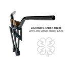 1 reviewExperience the ultimate upgrade for your hand controls with the LSS Lightning Strike Risers and Moto Bar Combo Pack! Our precision-engineered 5-axis CNC milled risers offer a noticeable 1" pullback for unmatched comfort on the road. Crafted from high-grade 6061 Aerospace aluminum, The design of these risers redefines industry standards, ensuring durability and style that stands out. Compatible with all 1" handlebars and fits various HD models. Elevate your ride with LSS Lightning Strike Risers & Moto Bar Combo Pack today!
