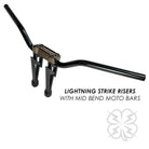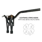 Customize your ride to perfection with the LSS Lightning Strike Risers & Moto Bar Combo Pack! Choose from a variety of color options for your riser set and select your preferred Thrashin handlebar height to complete your dream build. Rest assured, all combos are guaranteed by us to fit seamlessly onto your ride, ensuring a perfect match every time.
