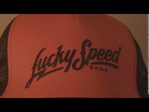 Be heard, Be seen! Hi Vis neon orange trucker snapback with electrified Lucky Speed Shop Cursive logo!