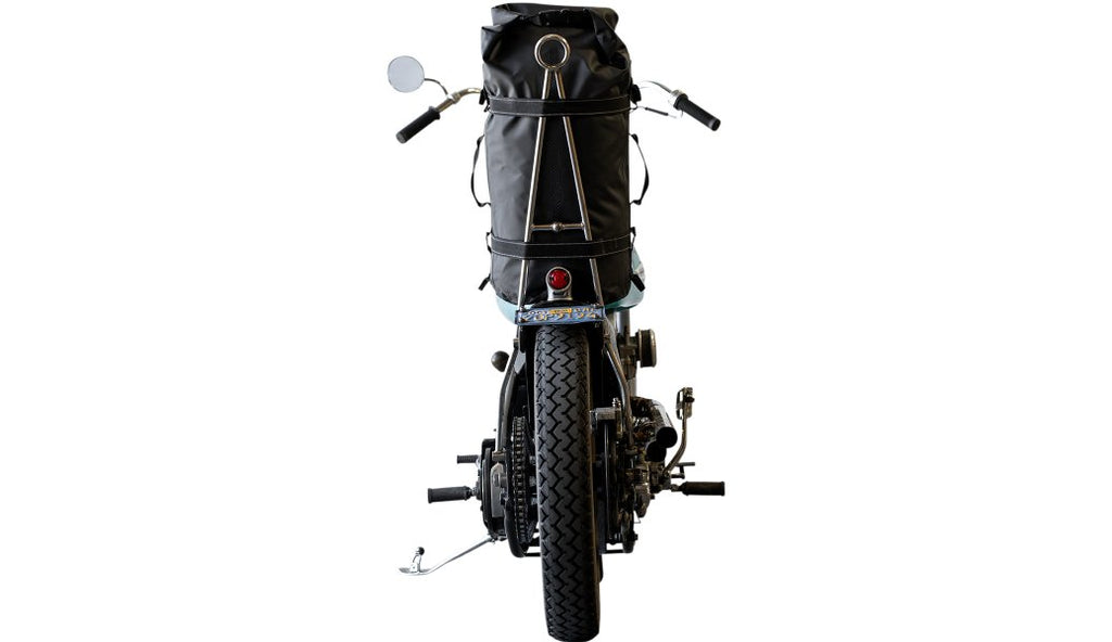- Bag works mounted vertically on a sissy bar, or laid down on or across a luggage rack